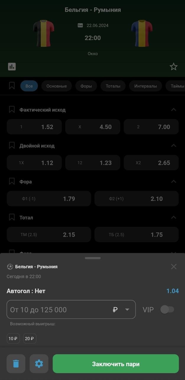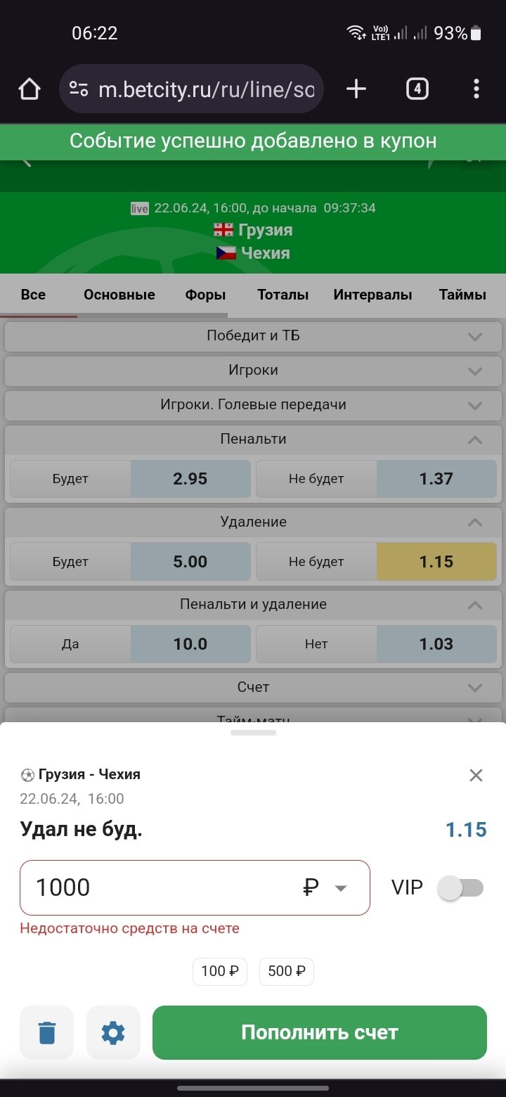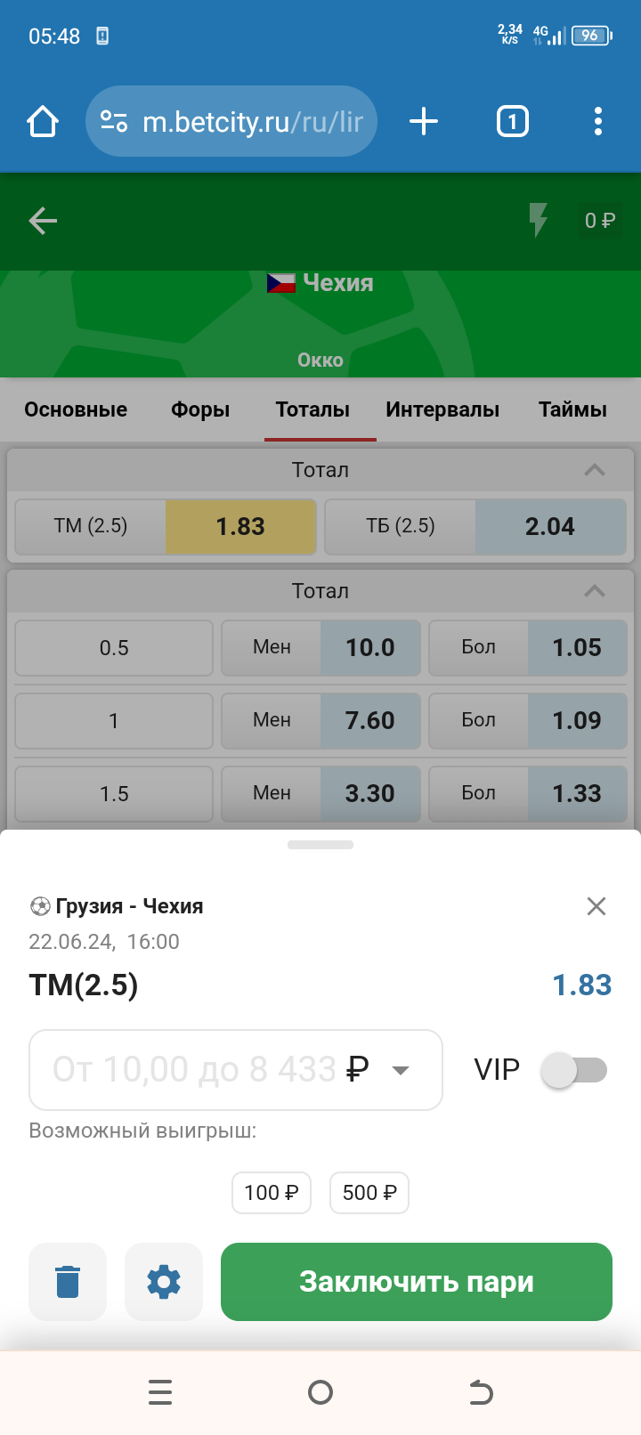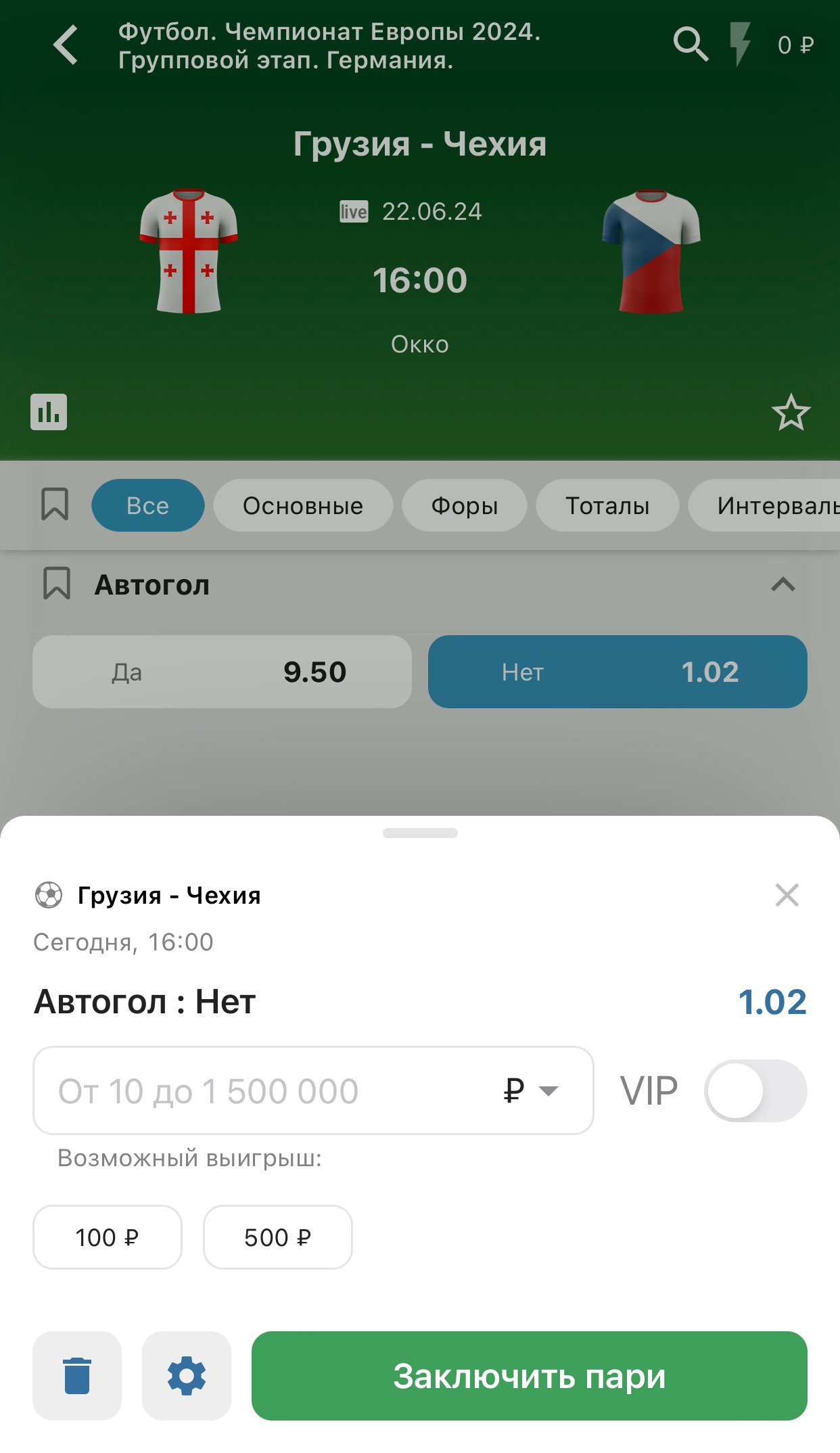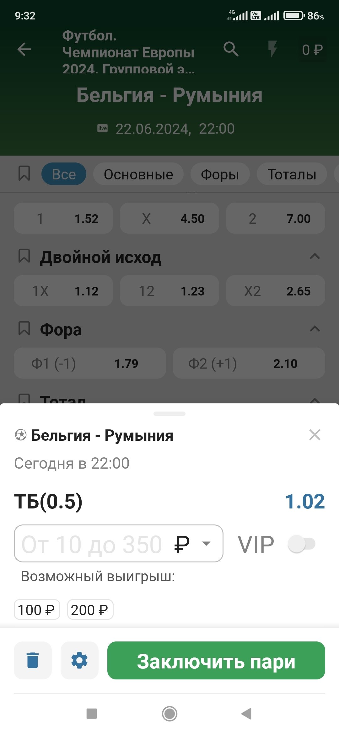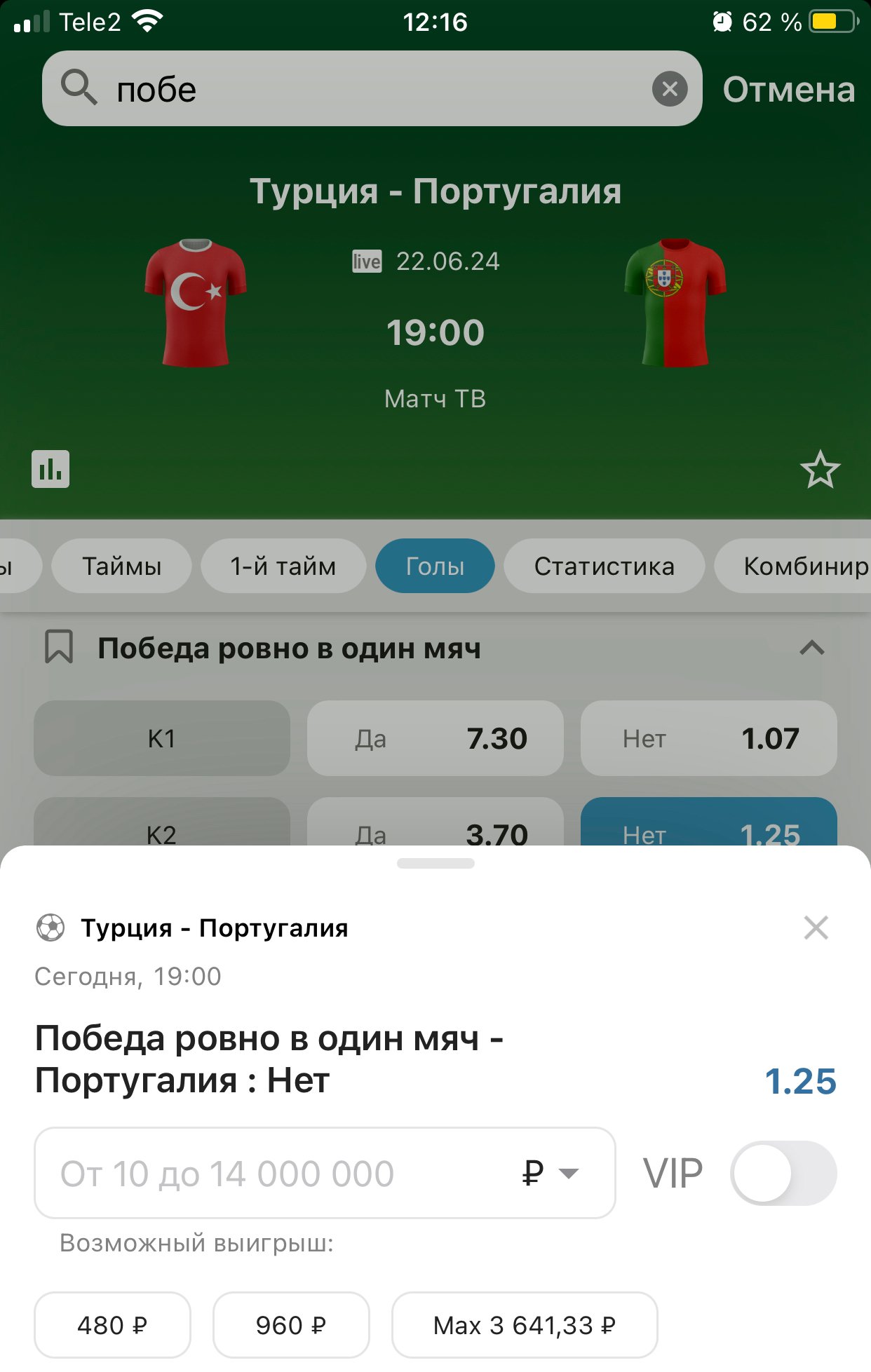 Например, вы ставите на ТБ 0,5 в матче Грузии и Чехии за 1.05. Если они сыграют 0:0, то ваша ставка проиграет, и, следовательно, вы претендуете на фрибет. А вот если грузины и чехи забьют хотя бы 1 гол, то вы выиграли, фрибет не полагается.