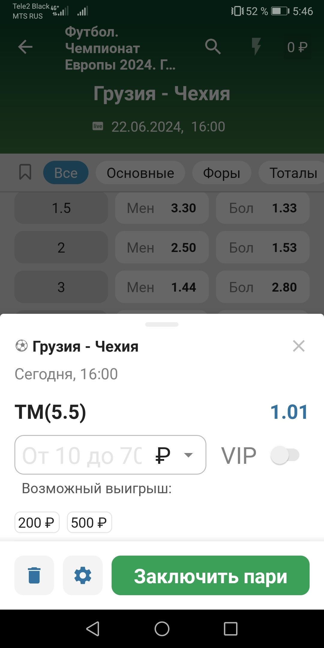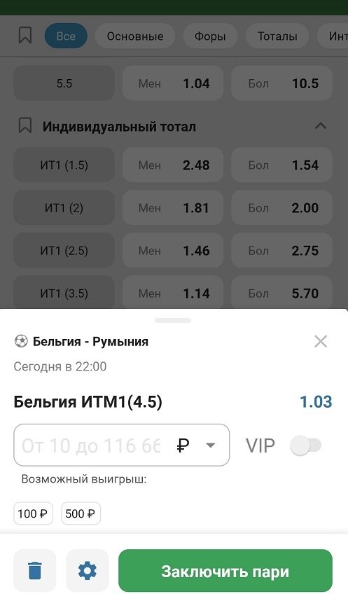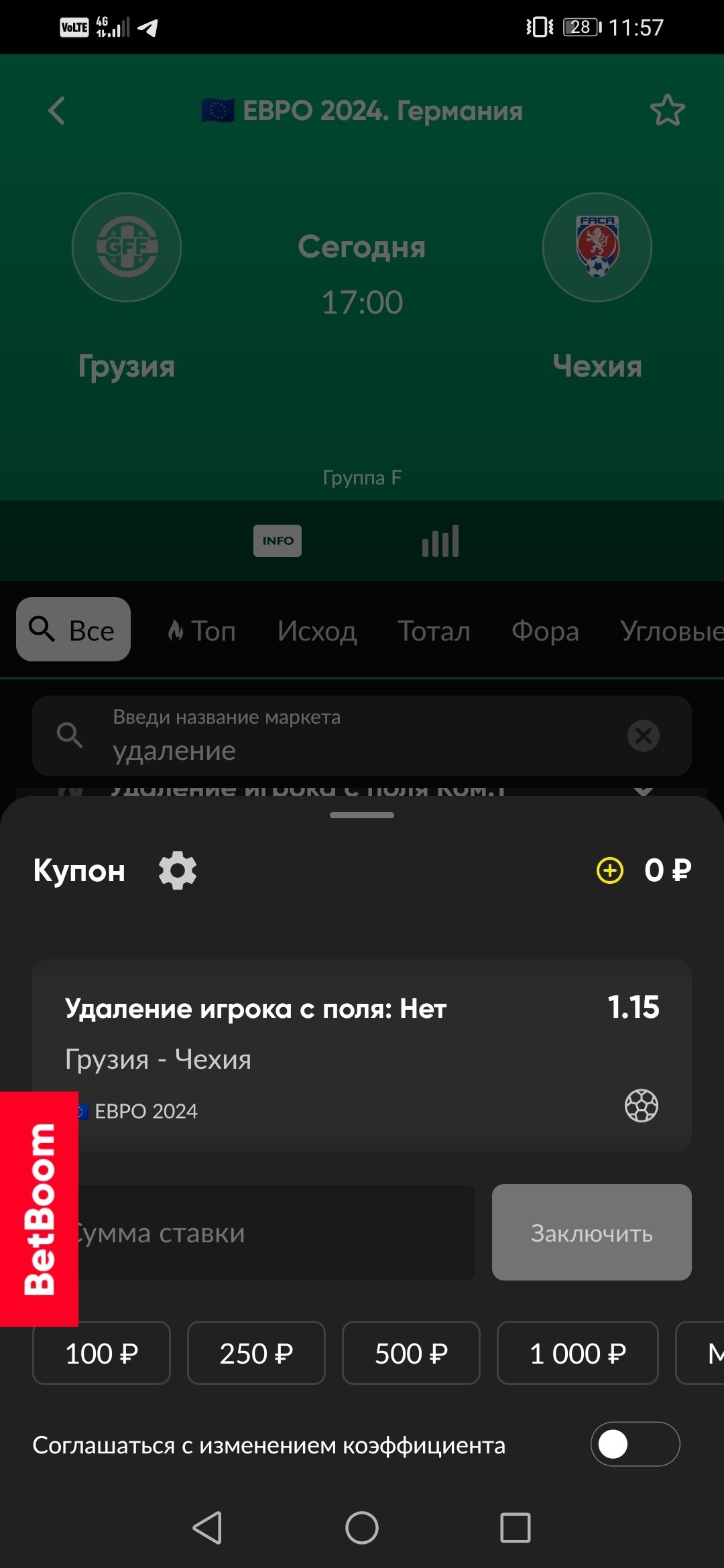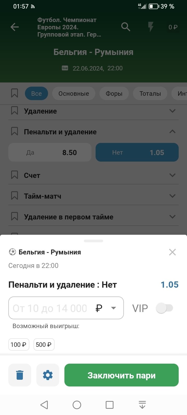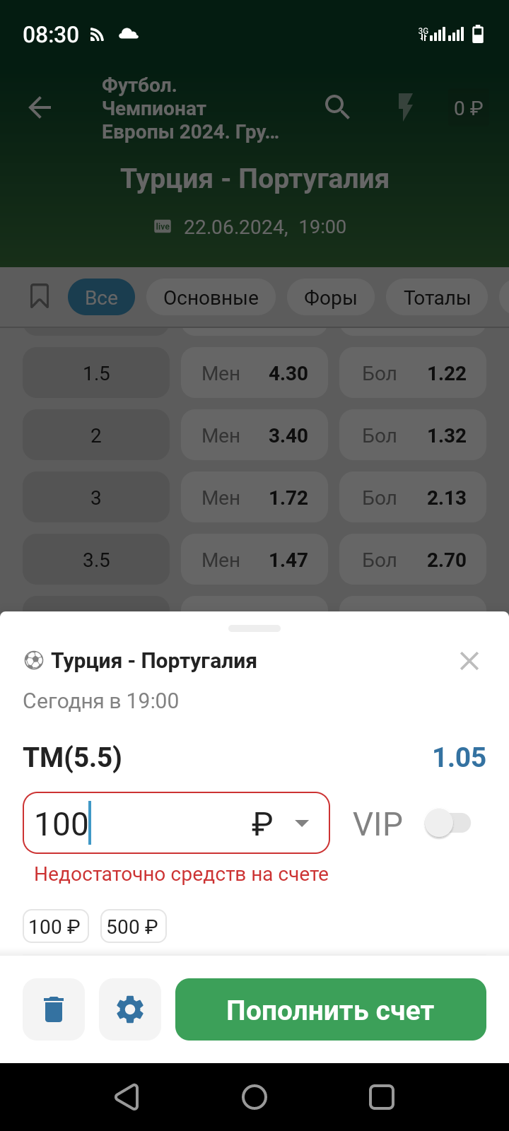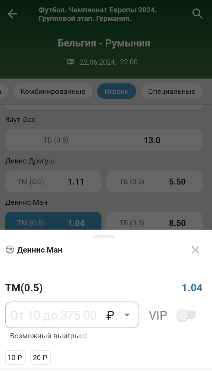 Например, вы ставите на ТБ 0,5 в матче Грузии и Чехии за 1.05. Если они сыграют 0:0, то ваша ставка проиграет, и, следовательно, вы претендуете на фрибет. А вот если грузины и чехи забьют хотя бы 1 гол, то вы выиграли, фрибет не полагается.