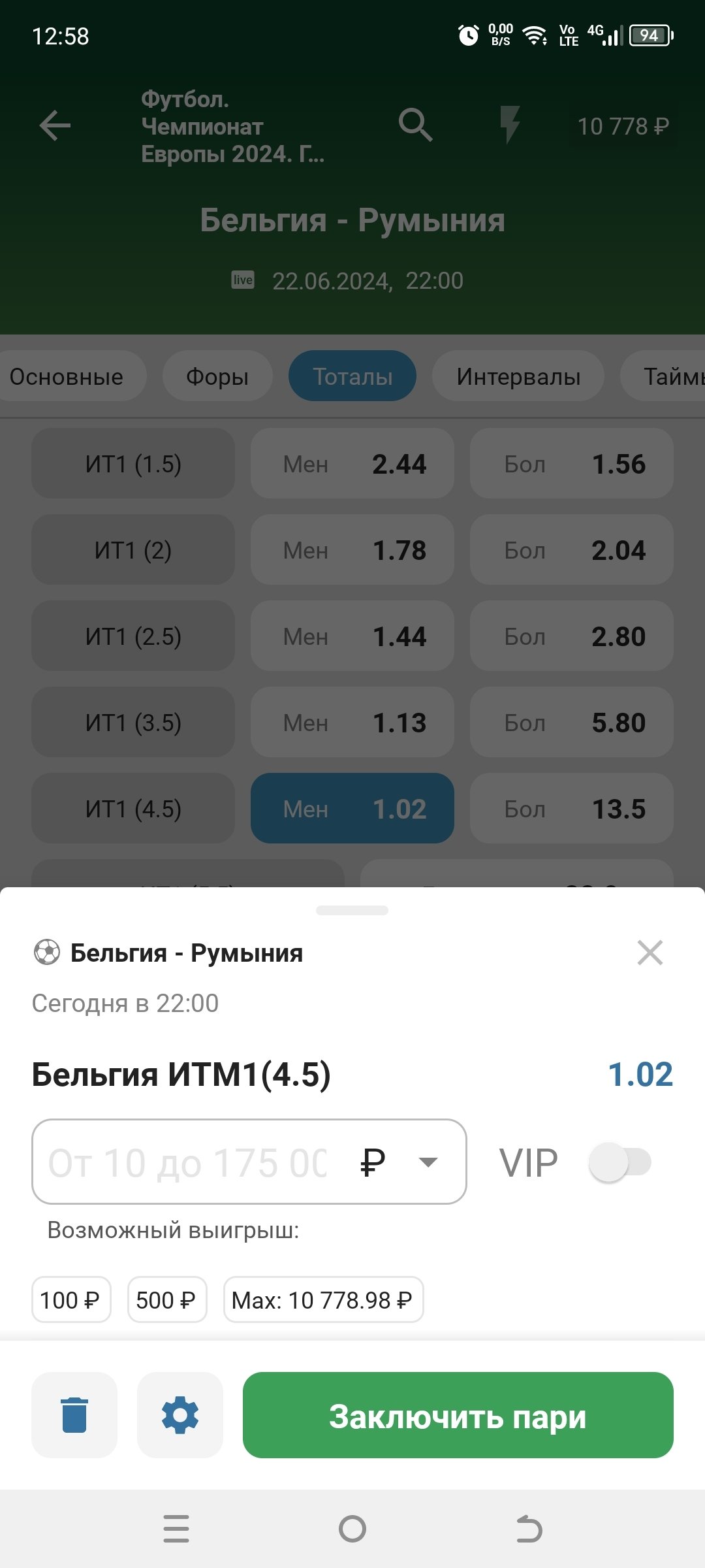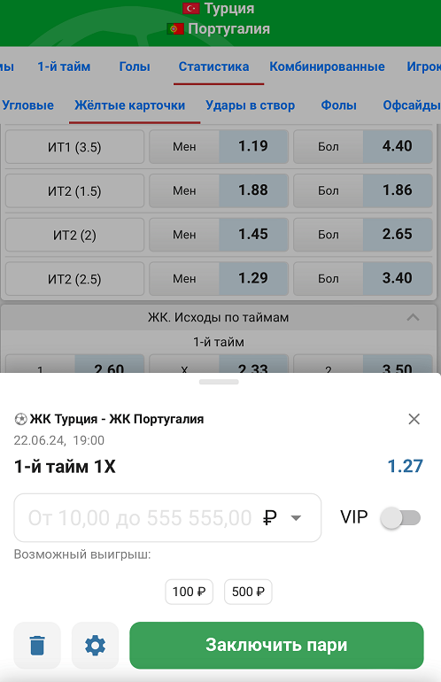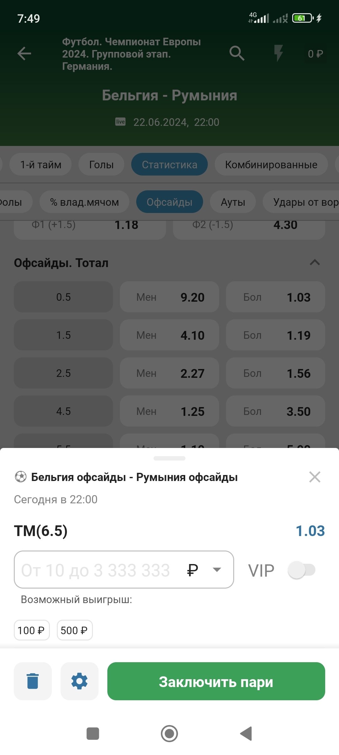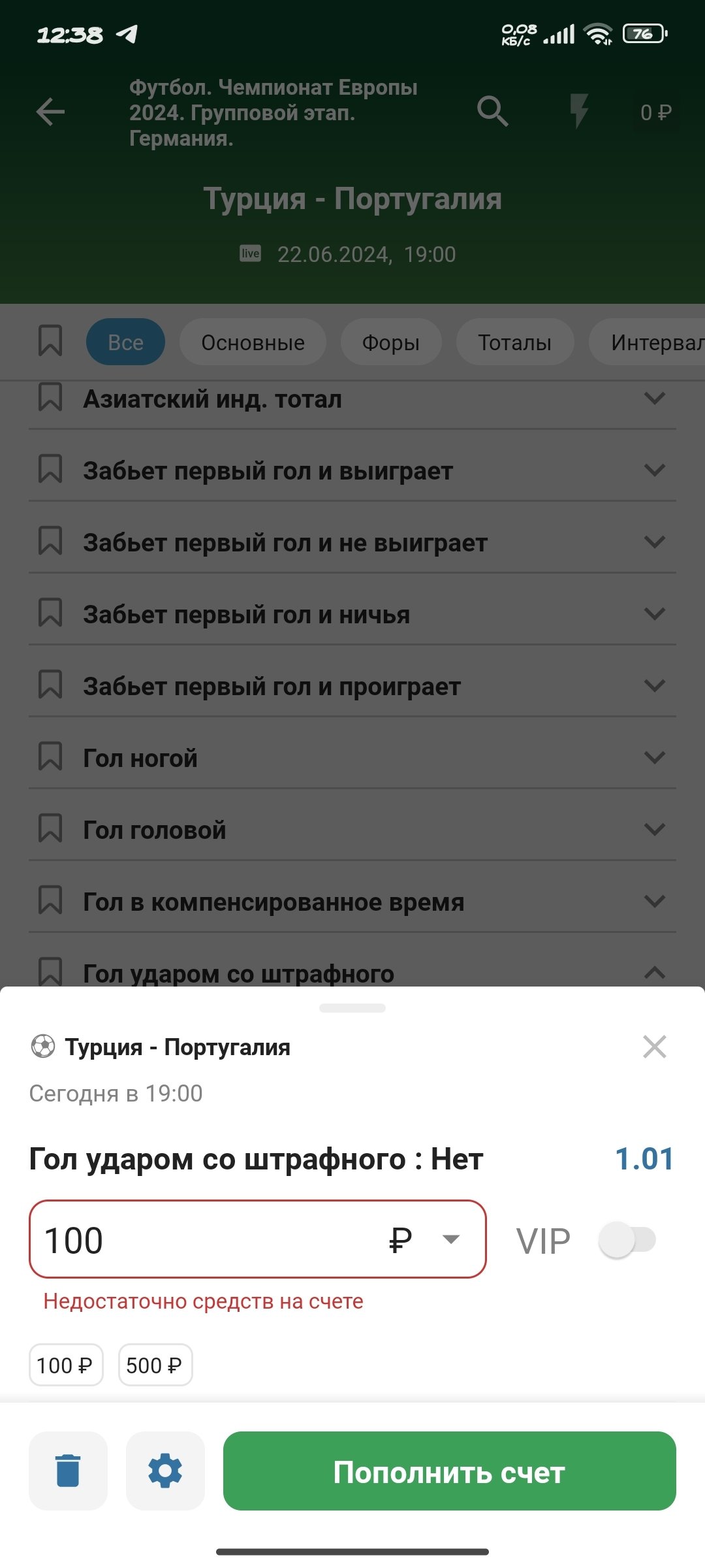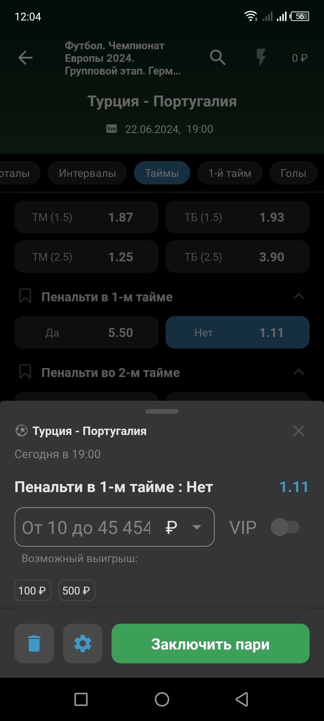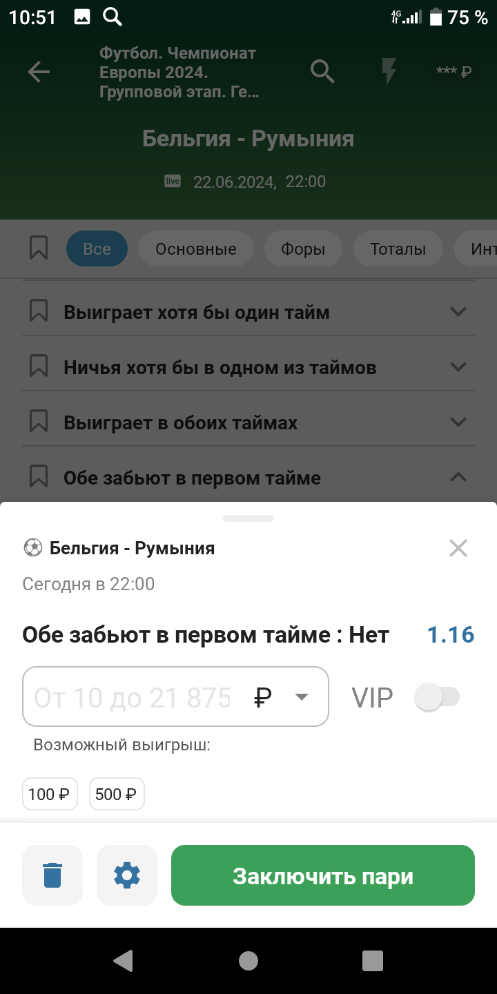 Например, вы ставите на ТБ 0,5 в матче Грузии и Чехии за 1.05. Если они сыграют 0:0, то ваша ставка проиграет, и, следовательно, вы претендуете на фрибет. А вот если грузины и чехи забьют хотя бы 1 гол, то вы выиграли, фрибет не полагается.