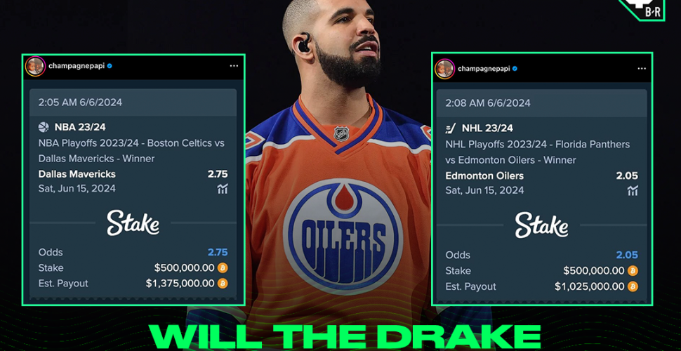 Перед началом финальных серий плей-офф в НБА и НХЛ рэпер поставил по 500 тысяч долларов на аутсайдеров — «Даллас Маверикс» в баскетболе и «Эдмонтон Ойлерс» в хоккее. С баскетом интриги не получилось — «Бостон» закрыл техасцев за 5 игр. Но купон Дрейка на НХЛ уже заслуживает попасть в рамочку на стену.