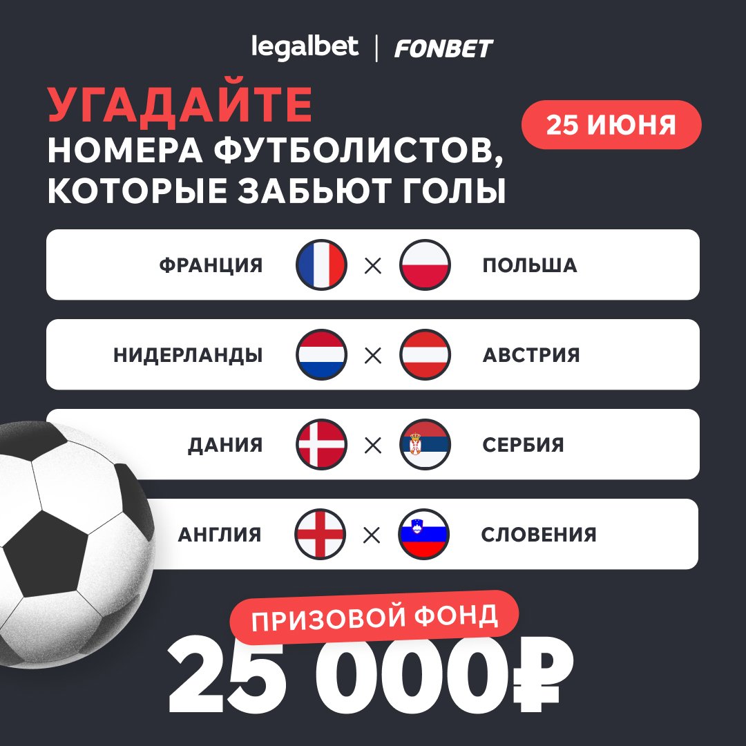 Конкурс от Legalbet и БК Fonbet, в котором нужно угадать номера авторов голов в следующих матчах: