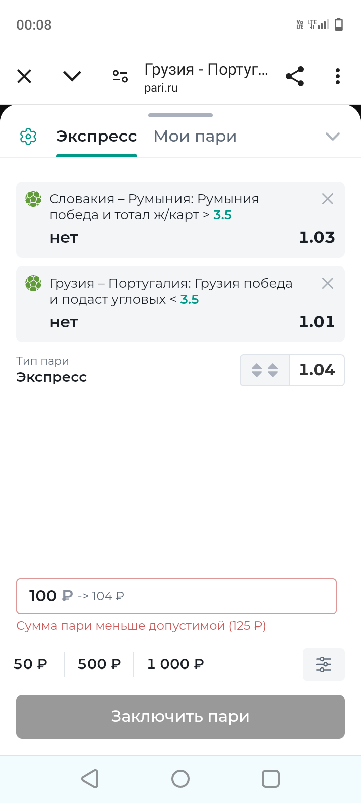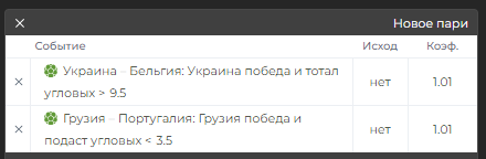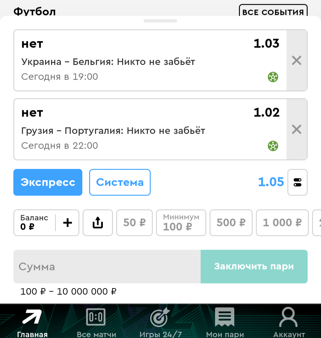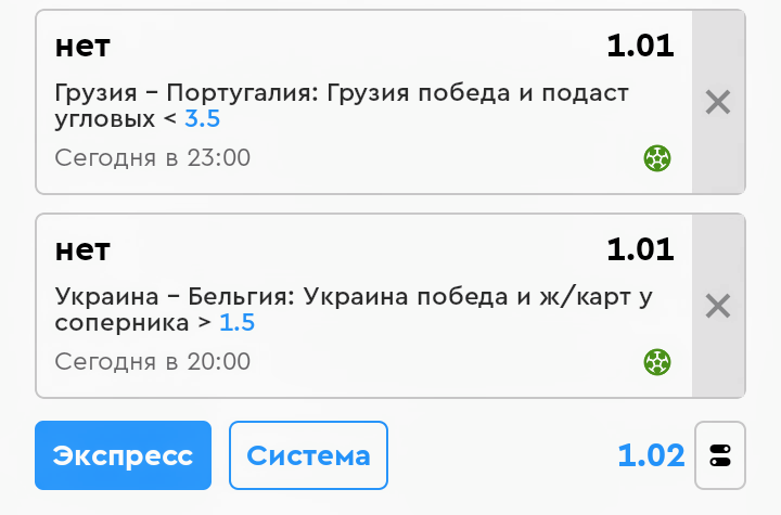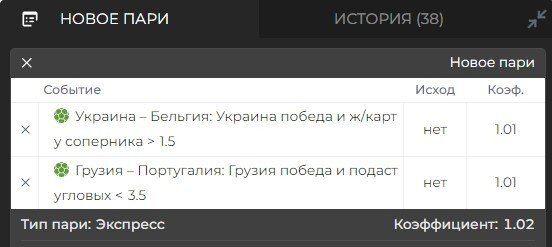 Здравствуйте! Ваш экспресс выиграл - в матче Грузия - Португалия не было ничьи 0:0, а Довбик не забил головой