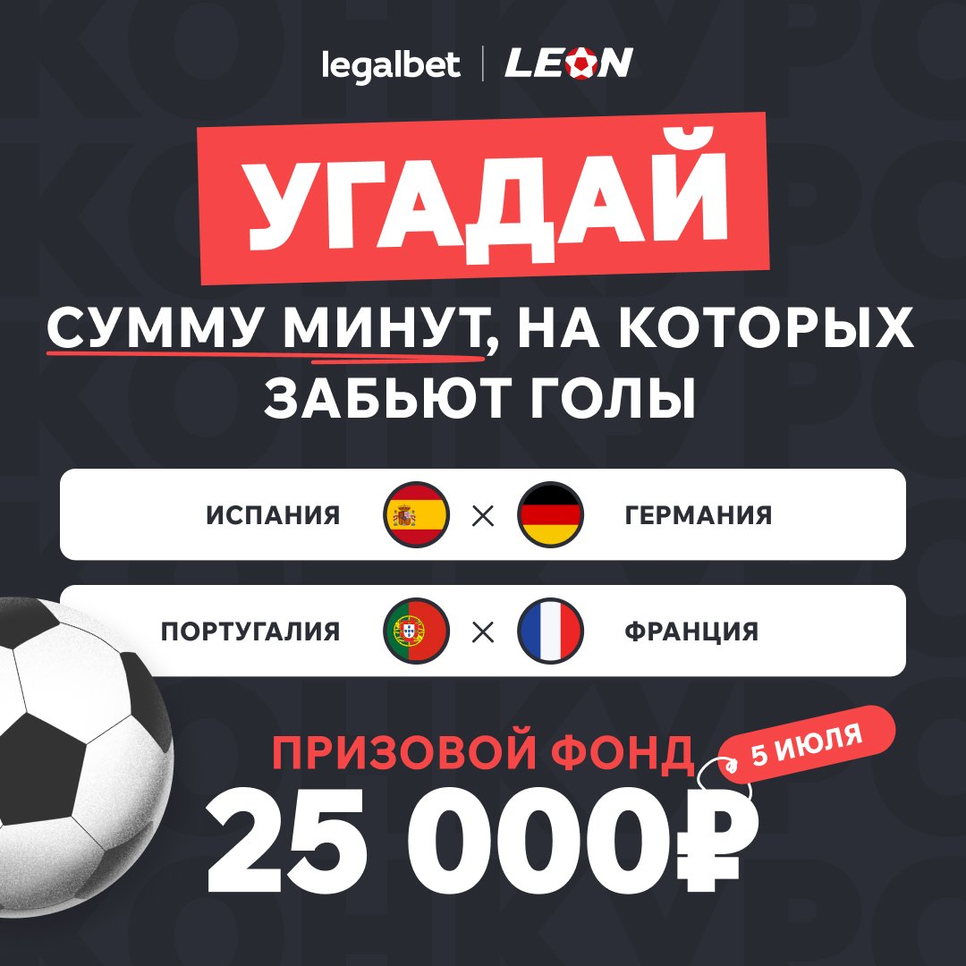 Продолжается Евро — продолжаются конкурсы, на этот раз совместно с БК Leon. Угадайте сумму минут, на которых будут забиты голы в сегодняшних матчах: