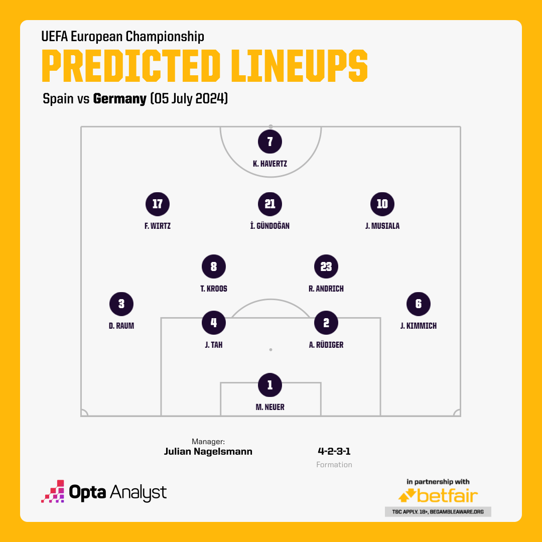 — Флориан Вирц выйдет в стартовом составе против Испании;