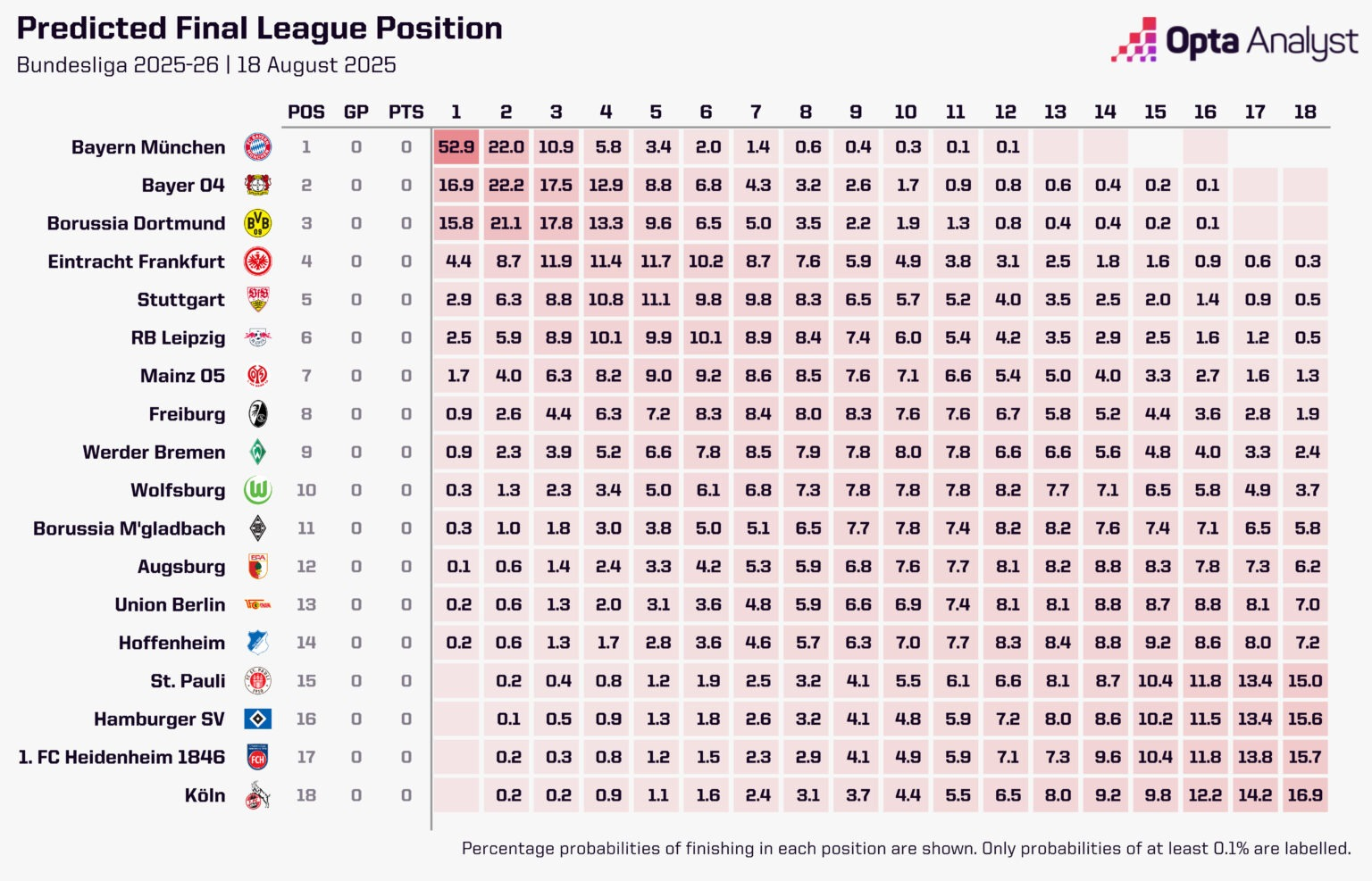 В прошлом году выжил один из двух новичков: «Санкт-Паули» финишировал в Бундеслиге 14-м, а вот «Хольштайн» стал только 17-м и вернулся обратно. На очереди — «Гамбург» и «Кёльн», которые входят в топ-3 претендентов на прямой вылет, если верить Opta: