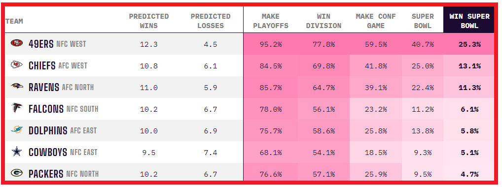 1. Никто и никогда не выигрывал Супербоул трижды подряд. «Чифс» забирали кубок в 2022-м и 2023-м, и теперь, по расчётам Opta, подходят к новому сезону с 13% на чемпионство — второй показатель среди всех команд. Коэффициент — 7.00