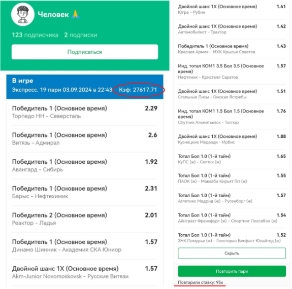 И это не баг — люди повторяют купон человека, у которого на прошлой неделе доехал самый высокий коэффициент из рейтинга игроков. Забавно, что ник у этого пользователя — «Человек» (точно ли?), а зашедшая для выхода в топ котировка — 54.00. Но второе никак не мешает почти сотне других «хомяков» повторять за удачливым клиентом уже с куда большими рисками.