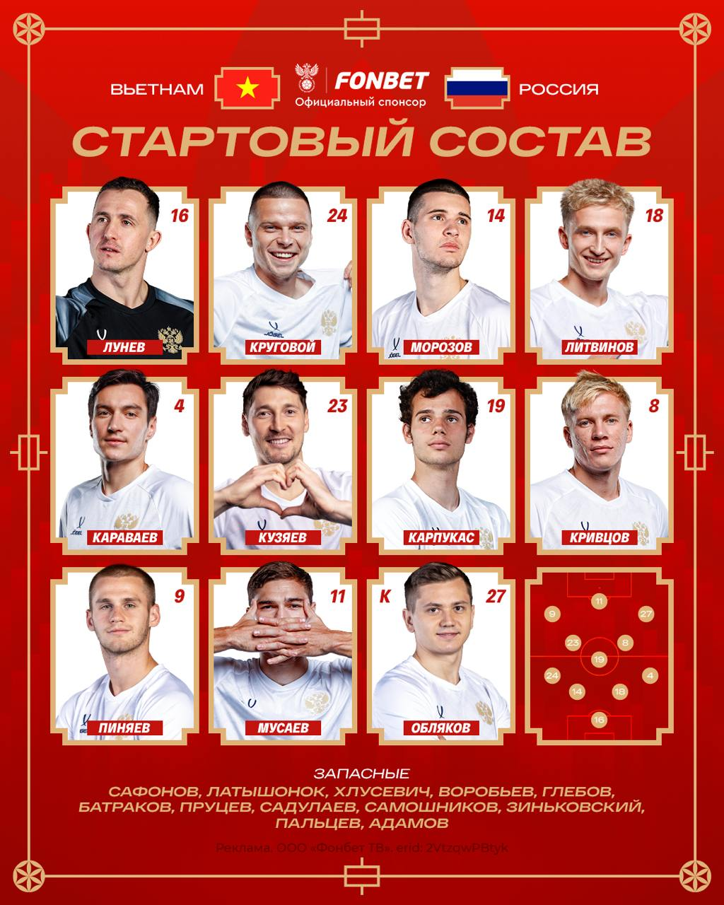 идёт Тюкавин, которого нет даже в заявке на матч. А вот что дают на тех, кто выйдет в старте: