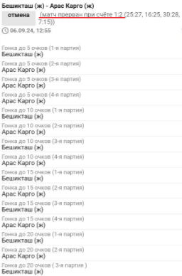 Формально победу со счётом 3-1 одержал «Араса Карго», но букмекеры объявили встречу прерванной при счёте 2-1. Ставившие на «Бешикташ» за 1.04 получат возврат вместо проигрыша.