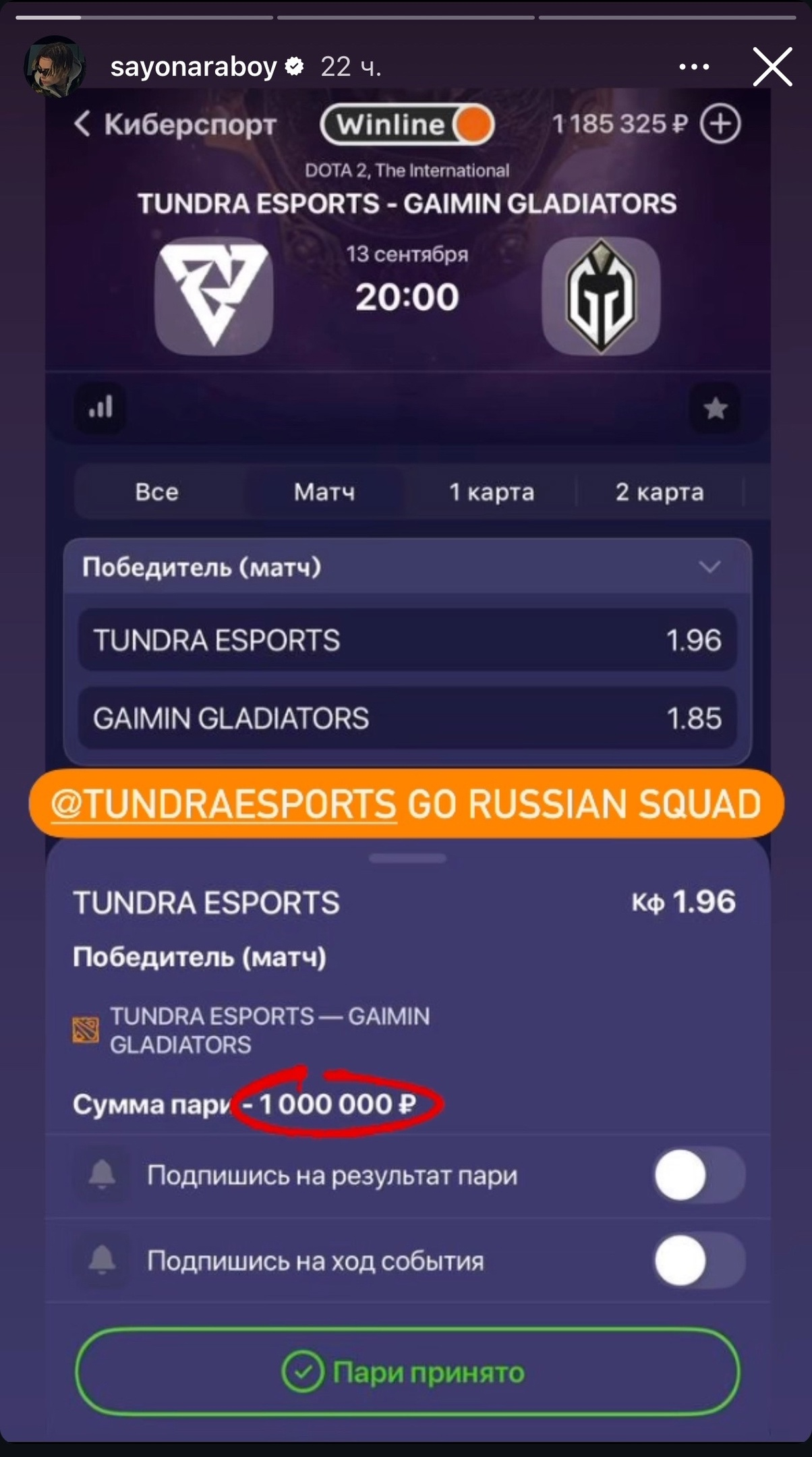 Импортозамещение в деле — канадец уже стал ставочной легендой, но и российские рэперы не отстают. Вот какой скрин выложил Элджей в своих соцсетях.