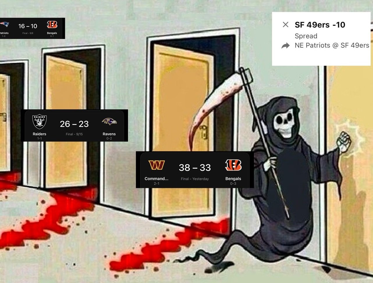 Первая: «Цинциннати Бенгалс» за 1.25 на победу и с форой (-8,5) проиграли «Нью-Ингленд Пэтриотс» (10:16). Победа вторых — 4.21