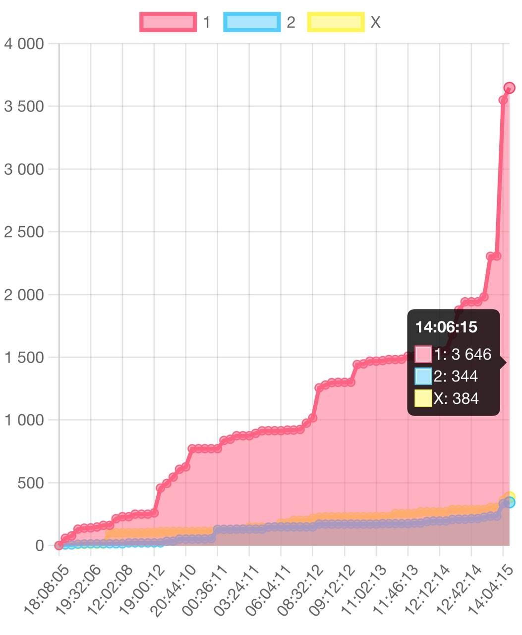 На «Гнистан» уверенно льются приличные по меркам финской плей-аут группы деньги — 83% от общего объёма ставок на исходы, а именно 3646 долларов. Причём буквально час назад прилетел максбет — 1243 бакса на П1 по коэффициенту 1.86