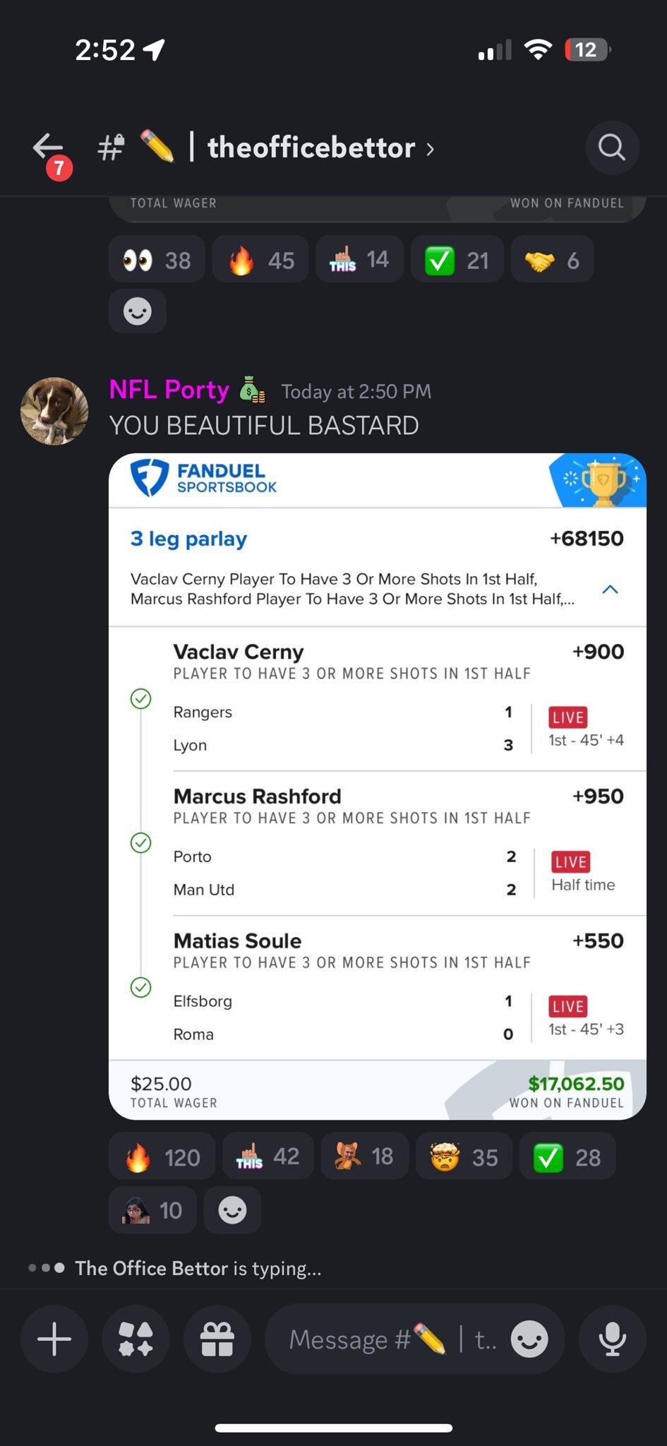 Американцы тоже следят за европейским футболом — даже ставят. Игрок зарядил экспресс на удары футболистов в первых таймах, видимо, по привычке из бейсбольных хоум-ранов. Все три события обошлись без нервов: Вацлав Черный, Маркус Рэшфорд и Матиас Суле не подвели, будто это не коэффициент 682.5, а какие-нибудь классические 1.85.