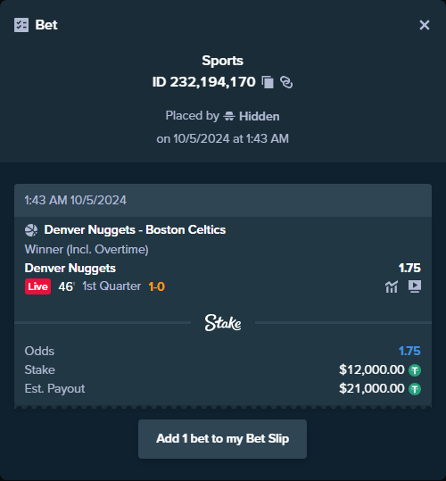 Видимо, фанаты баскетбола сильно заскучали без любимой лиги. Другого объяснения столь нетерпеливой ставке не найти. На первую же четверть в предсезонке между «Денвером» и «Бостоном» поставлено 12 тысяч баксов — на победу «Наггетс». Пусть команды и выскочили в лучших составах, но это же товарка.