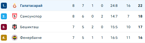 Стамбульская команда становится чемпионом в 100% случаев, если набирает 22 очка в восьми стартовых турах, как в сезоне-2023/24: