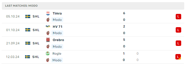 Одна из худших команд шведской вышки по прошлому сезону и абсолютно худшая в этом открывает новые грани ужасов: «МОДО» оформил всего 12 шайб — все на своём льду. Три выезда — три сухих поражения. Ещё одно — в последнем выездном матче прошлой кампании, правда, в овертайме.