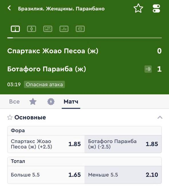 Такой подарок вчера подсветил Артём Клаудио в своём телеграм-канале — при счёте 1:0 на четвёртой минуте дал ТБ 7,5 в матче женской бразильской лиги Параибано «Спартакс Жоао Песоа» — «Ботафого Параиба». Если вы ещё не запутались в названиях, продолжаем: изначально БК выкатили по равной всего лишь (-2,5) на вторых! Но, как отмечает каппер Legalbet, забрать такую фору было практически нереально — сразу же замки и смена котировок.