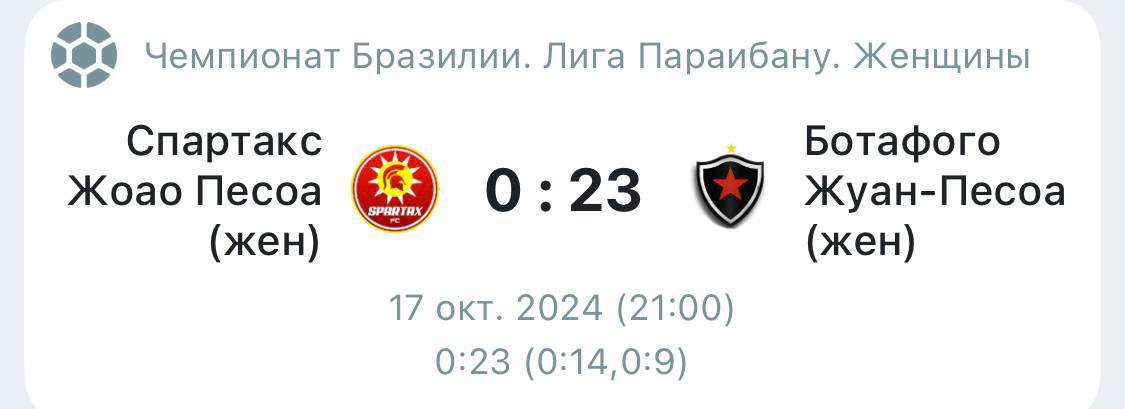 И кстати, это не единственный случай. Параллельно в чемпионате штата Параибано играли некие «Миксто» и «Диаманте», которые закончили со счётом 30:0. Но букмекеры не выкатили этот матч даже в лайве.