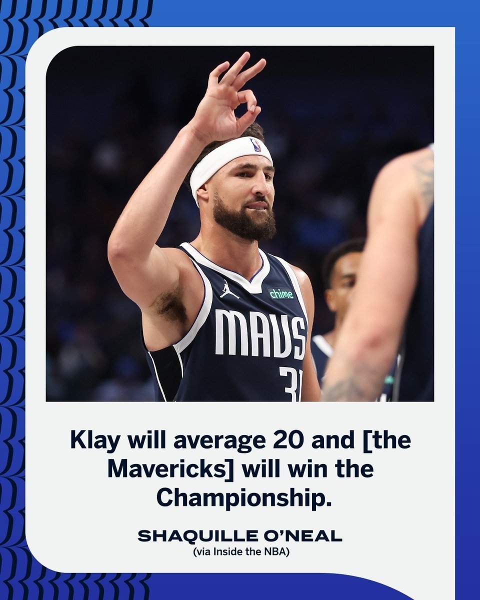 Шакил О'Нил, наблюдавший за игрой с трибун, дал короткое интервью Inside the NBA, в котором заявил, что Клей Томпсон закончит сезон с 20+ очков в среднем за игру, а «Даллас» станет чемпионом.