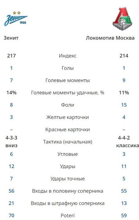 Матч закончился счётом 1:1. А вот официальная статистика матча от РуСтат: