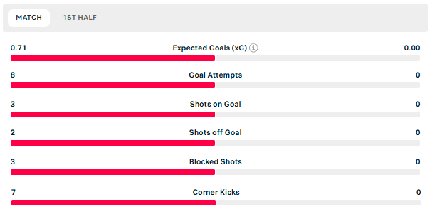 «Саутгемптона» на поле в первом тайме не было — нули практически во всех атакующих показателях. Можно подумать, что команда вообще осталась в раздевалке, если бы не пять фолов.