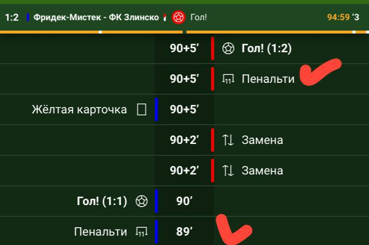 Что было дальше? Два пенальти в компенсированное время, второй — на 95-й минуте, хотя судья добавил всего три. Итоговые 1:2 и занос на тоненького. Совпадение?