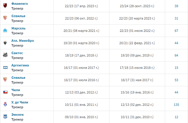 За 14 лет аргентинский тренер успел сменить 10 клубов в Европе и Южной Америке, но начал на новом месте работы с луза только в «Севилье» — попал под «Реал» (2:3) в Суперкубке УЕФА-2016. Остальное: