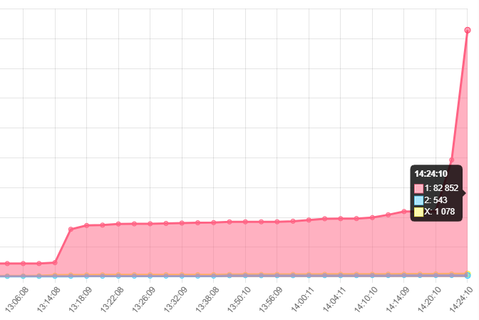 В домашнем матче против «Эль-Терасаны», на который проставляли в десятки раз больше, чем на остальные игры дня в лиге. На победу «Асьют Петролеум» загрузили больше 80 тысяч евро по бирже, из которых 60 тысяч залетели перед стартовым свистком. К третьей минуте «Асьют» открыл счёт.