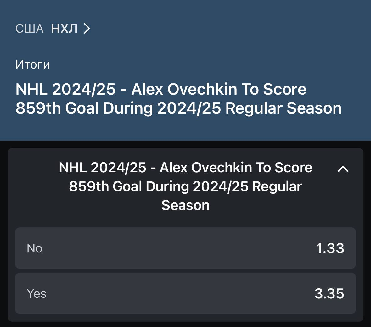 Всё верно — Ови эту планку пробил уже давным-давно: сейчас у россиянина 875 шайб в регулярках — ровно 20 остаётся до рекордных 895. Вероятно, букмекер именно 895 и имел в виду, но перепутал цифры местами — получился кэф 3.35, который сыграл ещё три месяца назад.