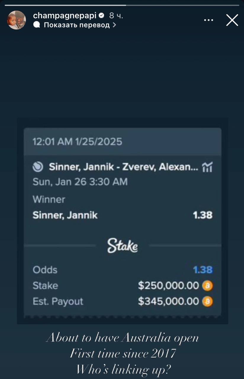 Не будем заранее хоронить первую ракетку мира заранее, но вспомним последние публичные ставки Дрейка — там всё грустно: