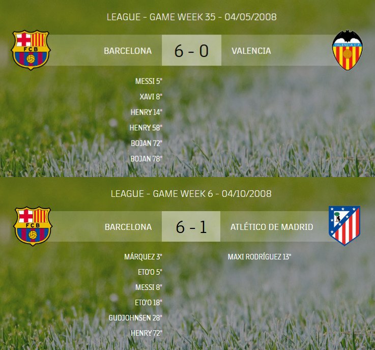 В 2008 году страдали «Атлетико» (6:1) и «Валенсия» (6:0), а сегодня снова не повезло вторым. Каталонцы отличились на: