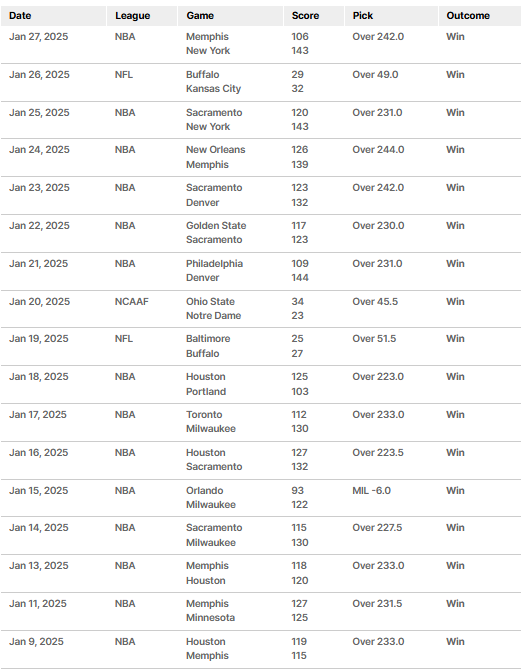 Прогнозист под ником @baberoxy17 выдал уже 17 верных прогнозов подряд — это лучшая актуальная серия в конкурсе прямо сейчас и топ-100 в истории сайта. Ставил @baberoxy17 в основном на тотал больше в НБА (13 из 17 матчей), плюс зацепил финал NCAA и два матча плей-офф НФЛ. Его 17-й верный прогноз означает, что он уже получит минимум 1000 долларов. До $100 тысяч нужно ещё восемь попаданий.
