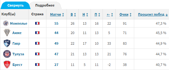«Ланс» выиграл у «Монпелье» 26 из 55 (47,3%) матчей в высших дивизионах Франции — больше, чем против любой другой действующей команды лиги. Сюда же вошла и домашняя личка первого круга (2:0) в сезоне-2024/25.