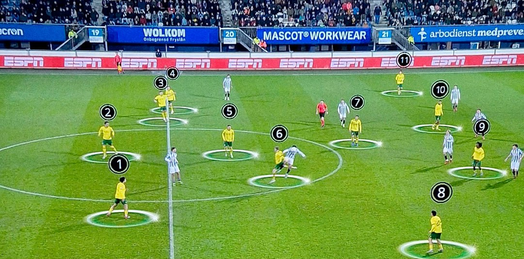 Почти полминуты после этой замены «Фортуна» играла с 11 полевыми футболистами + вратарём — в формате «12 на 11»: Дальхаус ушёл с поля лишь после апелляций тренера «Херенвена» Робина ван Перси. Но было уже поздно: «Фортуна» за эти полминуты заработала аут, который привёл к угловому — именно с этого углового гости сравняли счёт. То есть вся цепочка событий закрутилась ровно в тот момент, когда у «Фортуны» на поле был лишний игрок. Итог — ничья 2:2.