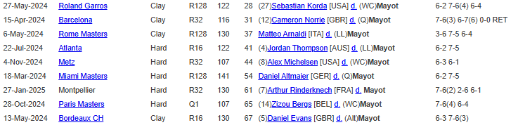 Крупнейшей победой для Майо остаётся Майами-2024 — над Артуром Казо, на тот момент 74-м в мире. Впрочем, и для Циципаса появление в Нидерландах станет первым после вылета на Australian Open в первом раунде, в 2025 году грек нигде больше не засветился.