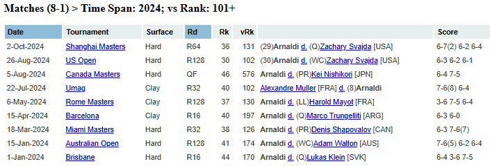 В зачёт 2025 года Арнальди успел провести только три матча — два круга Брисбена и один на Australian Open. Теперь в Далласе встретится с Кристофером Юбэнксом. Ещё полтора года назад американец поднимался в топ-30, но затем лишь терял очки и опустился на 104-е место.