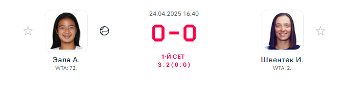 В прошлый раз Александра выносила экс-первую ракетку мира месяц назад в Майами за коэффициент 11.00. В этот раз — тащит уже за 5.00. За год Эала собрала пять побед на уровне WTA 1000 — среди азиаток в 19 лет или младше такое удавалось только Наоми Осаке в 2017-м.