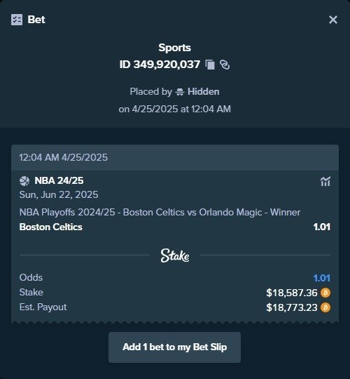Некто придумал ставку на 18 587 долларов, чтобы поднять 185 баксов. Проход «Бостона» при счёте 2-0 в серии с «Орландо» за 1.01.