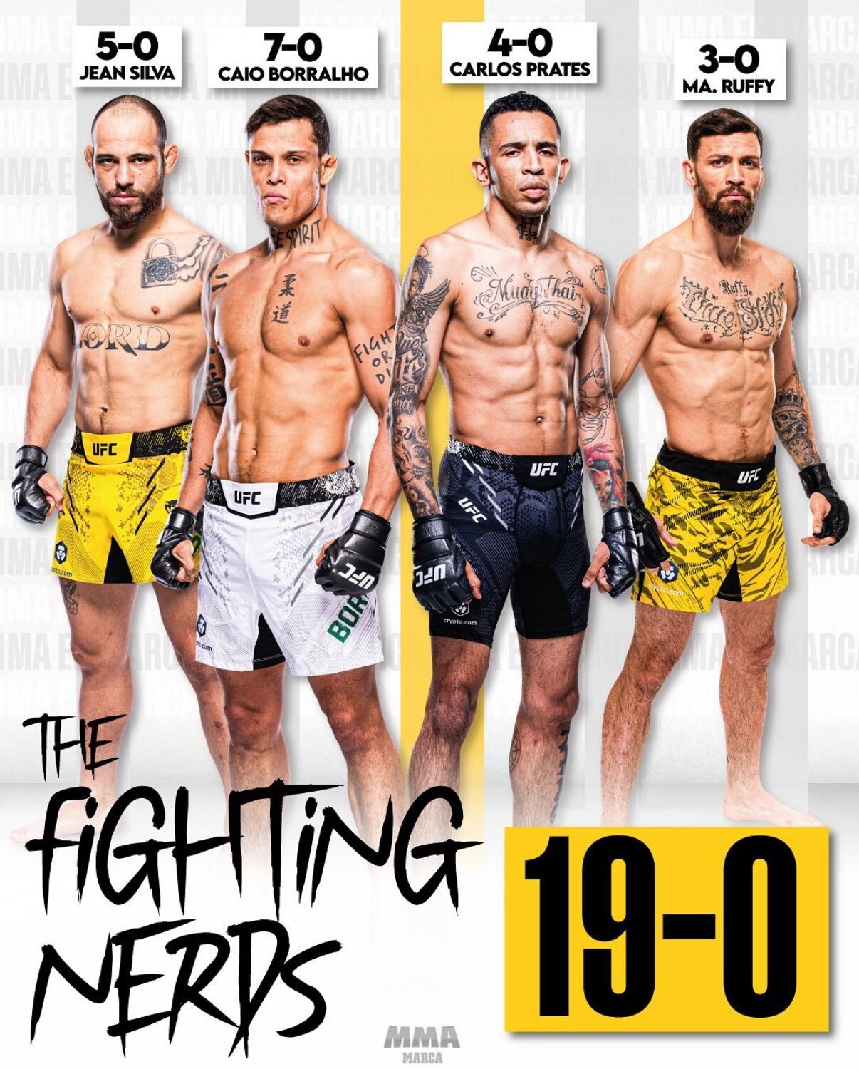 Южному централубоевым ботаникам. Четверо парней клуба ММА из Сан-Паулу идут в UFC с общим рекордом 19-0. В 2024-м зал бразильцев признали лучшим в смешанных единоборствах.Кайо Борральо — 7-0;