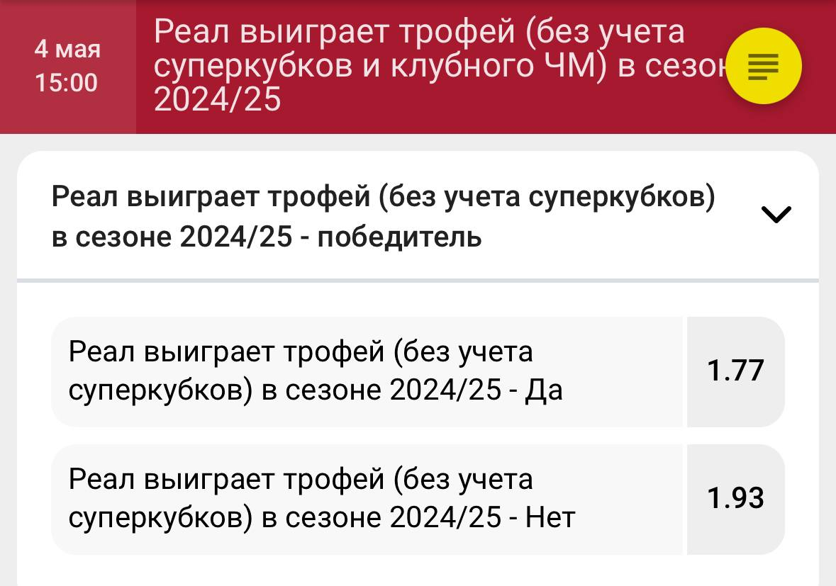на титул. То есть именно 5.00 — реальный коэффициент прямо сейчас на хотя бы один трофей Анчелотти в последнем сезоне в Испании, но никак не 1.77.