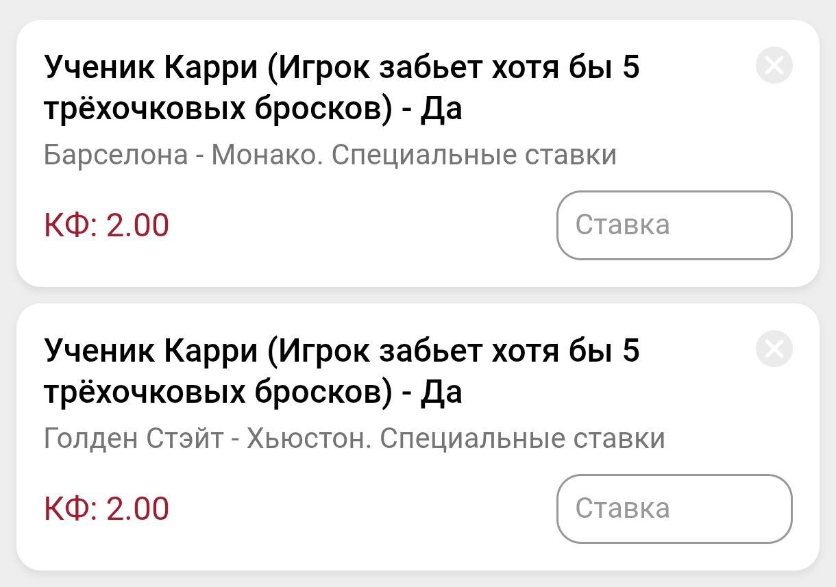 Зато в серии «Уорриорс» — «Рокетс» по 5+ трёх уже забрасывали Джейлен Грин, Хилд, Подземски, Ванвлит и дважды лично Карри, в честь которого и названа ставка.