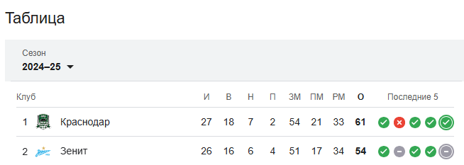 Теперь отрыв равен семи очкам, пусть у «Зенита» и остаётся игра в запасе.