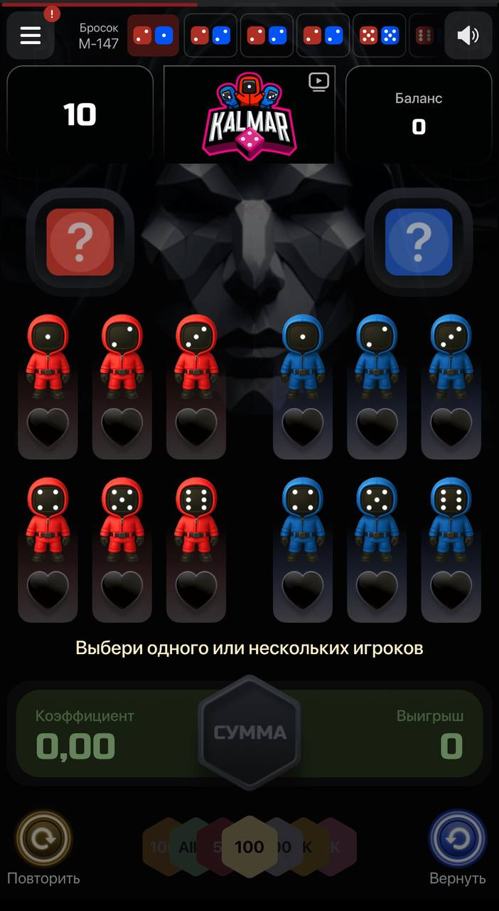«Кальмар» — эксклюзив от Winline на основе нард, стилизованный под «Игру в кальмара». На доске 12 фигур, поделённых на два цвета, у каждой фигуры собственная цифра (от 1 до 6), точно такая же, как на игральном кубике. Спортсмены бросают кости, а задача игрока — угадать, у какой фигуры цифра не совпадёт с выпавшим значением на кубике.
