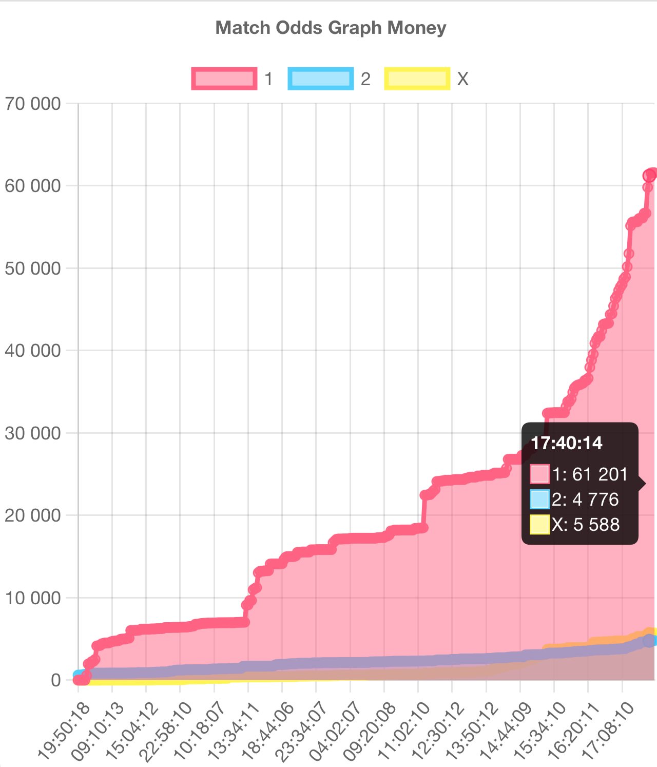 Коэффициенты продолжают падать — победа гостей открывалась по 5.00 , а за 15 минут до стартового свистка оценивается в 14.00