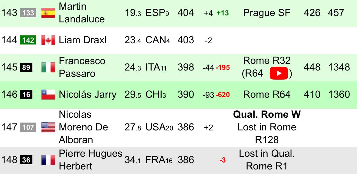 К римскому «мастерсу» чилиец подходил в статусе 53-й ракетки мира, но уже сегодня может опуститься на 146-е место — если проиграет Франсиско Серундоло во втором круге. В лайв-рейтинге Харри уже там:
