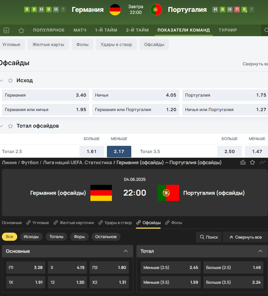 Наглядный пример: я выложил в свой телеграм-канал прогноз на ТМ 2,5 офсайда в матче Германии и Португалии с кэфом 2.45. В Fonbet котировка почти моментально обрушилась до 2.17, зато в Olimpbet по-прежнему можно было поставить за 2.45».