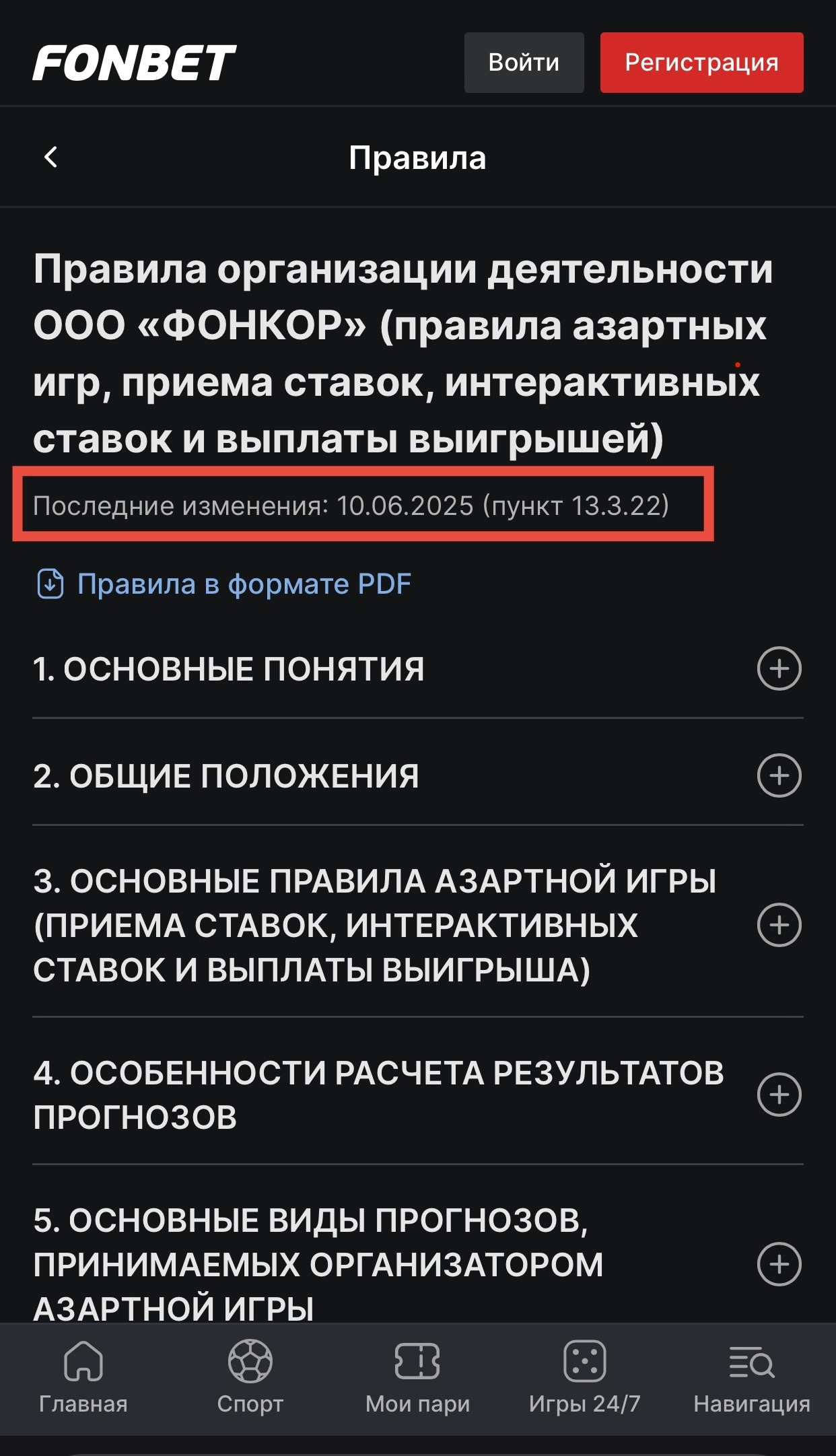 Глобально получается, что БК в любом случае не обязаны уведомлять игрока, но некоторые хоть как-то упрощают ему жизнь. И лучше всех это делают Fonbet с Bettery — даже конкретные пункты правил, которые редактировали, указывают. В остальных конторах придётся искать самому, потому что обновление документов на сайте они считают достаточным.