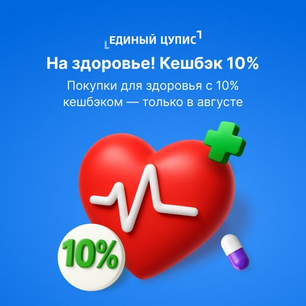 С 1 по 31 августа ЦУПИС проводит внезапную акцию «На здоровье!», о чём оповестил всех владельцев Цифровой карты по электронной почте. За оплату визитов к врачу, анализов, покупок в аптеках в августе картой ЦУПИС на сумму от 100 рублей можно получать кешбэк в размере 10%, который будет зачислен на карту до 15 сентября.