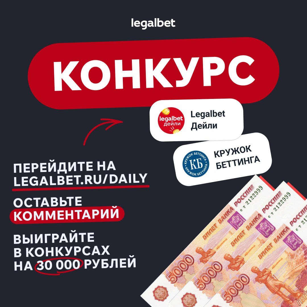 Legalbet Дейли совместно с телеграм-каналом Кружок Беттинга проводит три конкурса по 10 000 рублей.