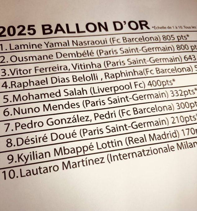 За сутки до вручения как всегда начали появляться «сливы» — вот в них верить вообще не советуем. Например, этот выглядит просто смешно: имя Мбаппе написано с ошибкой, есть лишние пробелы, Fc вместо FC, InternaTzionale в конце концов... Сколько лет автору, семь?